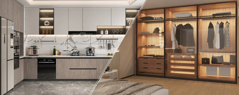Complete modular solutions for kitchens and wardrobes. Premium storage systems, chimneys, stoves, and interior finishing products from top brands. Transform your spaces with smart, organized, and stylish solutions.