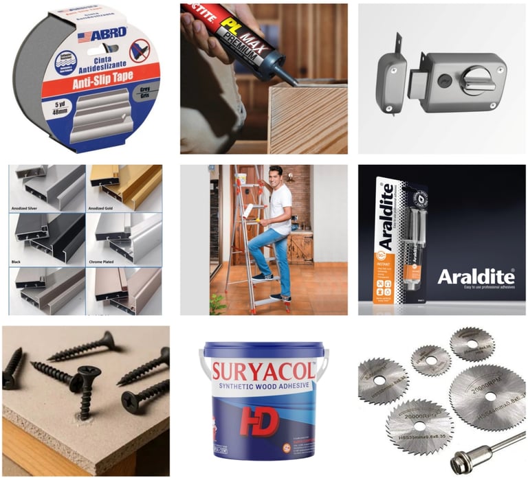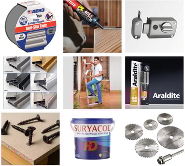 From trusted adhesives like Fevicol, Araldite, and Loctite Silicon to quality fasteners including PTA, Nakoda, and LP screws. We stock Bathla ladders, Suryacol adhesives, Abro Tape, various nails, padlocks, cutting blades, and profile shutters. Everything you need for construction, renovation, and repair work, all from reliable brands under one roof.